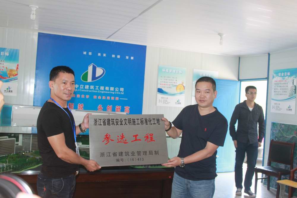 2016年5月17日,由麗水市建筑工程施工管理處副處長呂飛熊帶隊,縉云縣建設局、縉云縣安監(jiān)局等相關(guān)部門一行對我公司承建的縉云縣人民醫(yī)院遷建工程開展創(chuàng)浙江省建筑安全文明施工標準化工地安全綜合評定工作,并進行“參選工程”的授牌儀式。