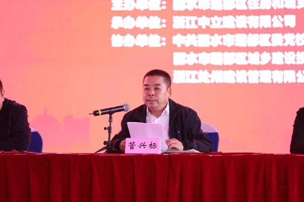 蓮都區(qū)副區(qū)長管興標(biāo)、蓮都區(qū)建設(shè)局副局長吳大勇、蓮都區(qū)委黨校常務(wù)副校長陸朝霞、區(qū)建投公司副經(jīng)理劉良、浙江中立建設(shè)有限公司董事長周健、浙江處州監(jiān)理總經(jīng)理王建武主席臺(tái)就座,蓮都區(qū)建筑施工、監(jiān)理企業(yè)代表及相關(guān)主管部門代表參加觀摩會(huì)。
